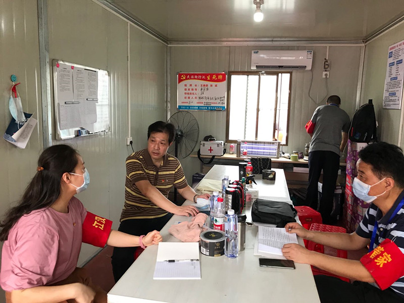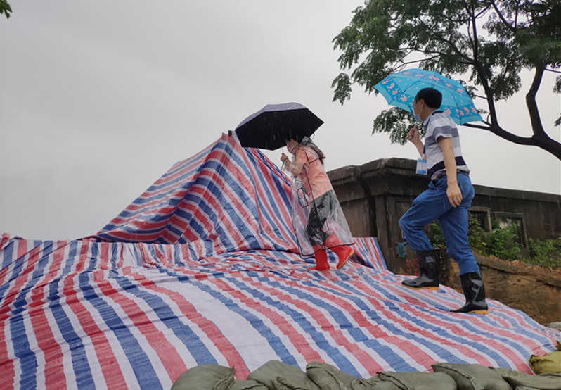 武汉市江汉区纪委监委机关在安排干部24小时值班备勤的情况下,又成立以2名处级干部牵头的5人“党员突击队”下沉防汛救灾一线。图为江汉区纪委监委信访室主任吴天文下沉到民族街,参与街道24小时的巡堤排险、轮流值班、监测预警、应急处置等工作。(严纯 摄)