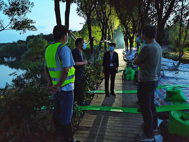 武汉市东西湖区柏泉街纪工委书记鲁道莉在东风垸堤和东西湖大堤督查防汛工作,对人员值守、防汛物资、巡查记录、防汛点位工作落实等情况进行监督检查,切实保障防汛工作“最后一公里”。(李同星 摄)