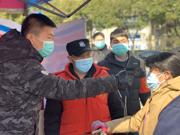 2月17日起,上海市纪委监委机关51名党员干部组成志愿者临时党支部,分成5个小组,前往上海普陀区长征镇、长寿街道、长风街道、宜川街道下属的14个居民区、3幢楼宇和1个园区,参与一线疫情防控,当好“战斗员”。(上海市纪委监委供 尚纪轩 摄)