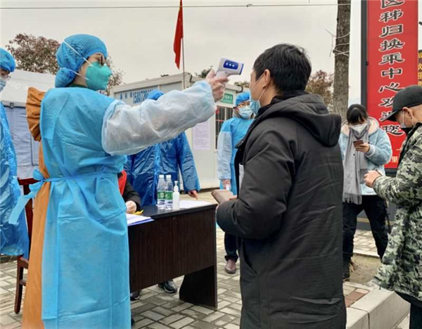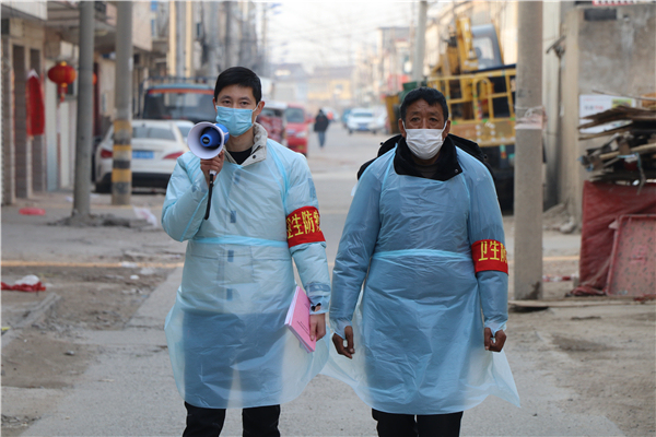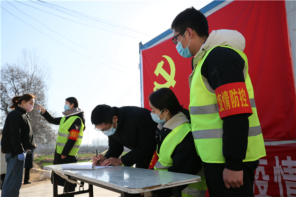 江苏省响水县的夏小耀是一名现役军人,春节前从部队回到家乡休假探亲。疫情发生后,他主动向村干部请缨,参与疫情防控工作。(江苏省响水县纪委监委供 黄玉娟 摄)