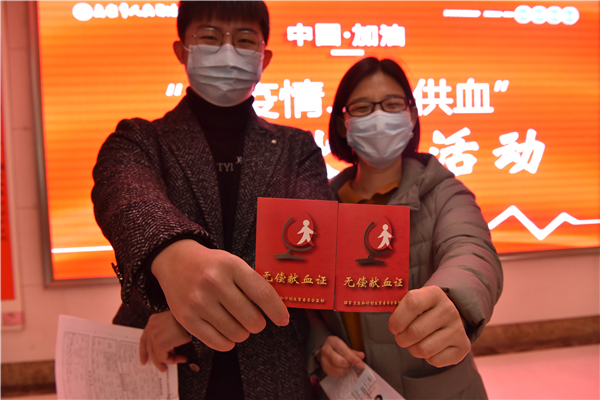 2月17日,山东省高密市纪委监委一对纪检监察“夫妻兵”听说需要献血,在汇报完当天的督导检查情况后,便一起赶去医院无偿献血。(山东省高密市纪委监委供 谭炳辉 摄)