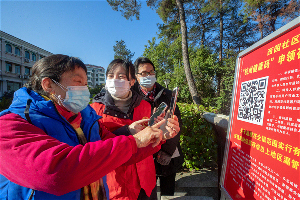 “扫一扫,填好信息就有健康码了,凭健康码出行更方便。”杭州市淳安县纪检监察干部鲍宇晗正在向居民介绍“杭州健康码”的申领及使用。疫情防控期间,她主动下沉社区充实基层防控力量,看护服务居家医学观察对象、社区走访、防疫检测点值勤……每项工作都认真细致完成。(杭州市淳安县纪委监委供 毛勇锋 摄)