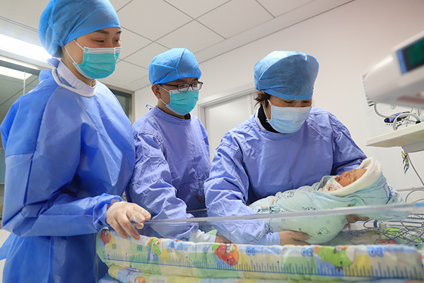 针对高度疑似新冠肺炎产妇的早产婴儿,武汉市东西湖区人民医院新生儿科医生和护理团队制定专项诊疗方案,日夜倾心照顾,经过14天的治疗护理和隔离观察,婴儿两次核酸检测呈阴性,身体各项健康指标达到出院标准顺利出院。(武汉市东西湖区纪委监委供 李雪 摄)