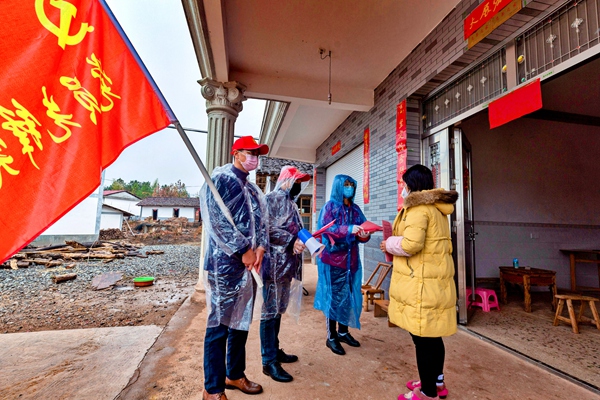 为进一步织密农村疫情“防控网”,湖北省通城县185个村(社区)组建村级疫情防控工作队,党员干部冲在最前沿,进村入户巡查登记、测量体温,并做好科学防疫知识宣传工作,坚决遏制疫情向农村地区扩散蔓延。(湖北省通城县纪委监委供 刘建平 摄)