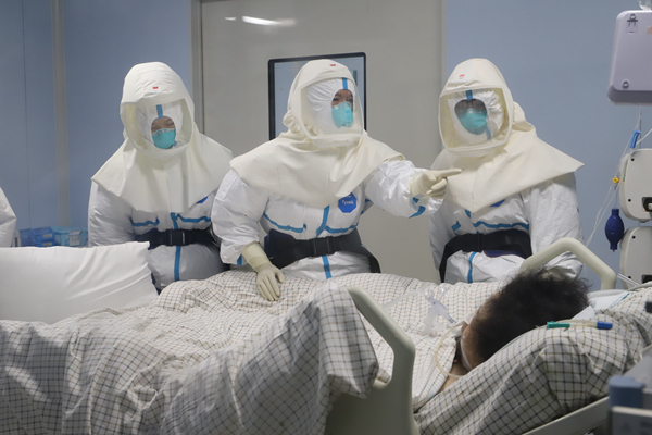 协和东西湖医院党委副书记、副院长周静主动请缨下基层,身体力行在一线,参与过非典患者救治的她,与医护人员并肩作战,连续奋战20余天,查房、抢救、总协调,她在临床专家、医疗管理舵手的双模式中随机切换,坚守在抗击新冠肺炎的最前线。(武汉市东西湖区纪委监委供 李雪摄)
