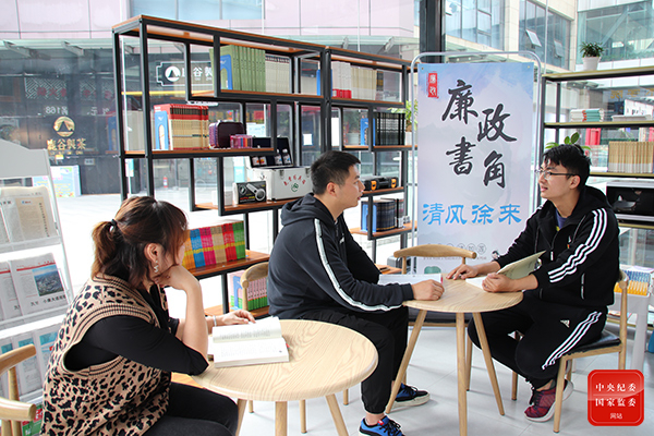 贵州省遵义市红花岗区北京路街道在红色驿站开设“廉政书角”,免费向党员群众开放,不定期组织开展读书活动,让广大党员和居民在潜移默化中受到廉政文化的熏陶。(贵州省遵义市红花岗区纪委监委供 刘珈宏 摄)