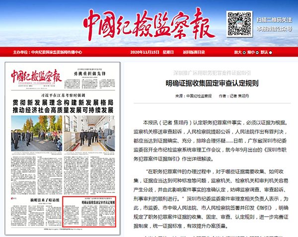“在职务犯罪案件的办理过程中,对于哪些证据需要收集、如何收集,证据应当达到何种标准等问题,监察机关、检察机关和审判机关容易产生分歧,并由此影响案件事实的准确认定,妨碍监察调查、审查起诉、刑事审判的顺利进行。”深圳市纪委监委案件审理室相关负责人表示,为此,市监委、市中级人民法院、市人民检察院签署并印发《指引》,明确规定了职务犯罪案件证据的收集、固定、审查、认定规则,进一步完善证据制度,统一证据标准,有效提升办案质量。