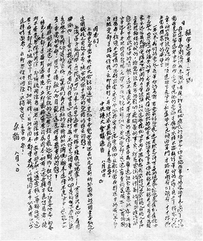 中国共产党第一部惩治贪污腐化分子的文件《中央扩大会议通告——坚决清洗贪污腐化分子》(图片来源:中国共产党纪律建设历史陈列馆)