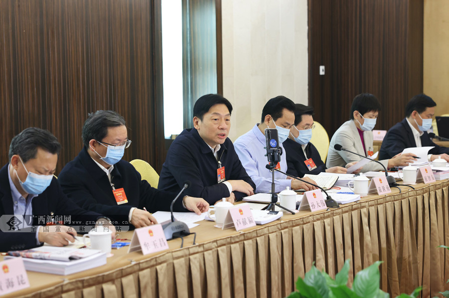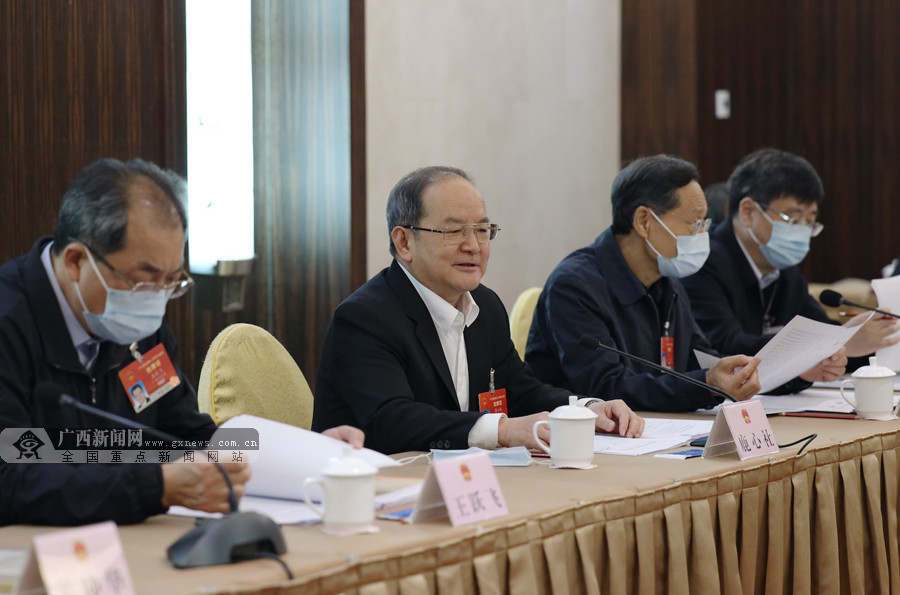 3月9日上午,广西代表团在驻地举行代表小组会议,分组审议全国人大常委会工作报告。自治区党委书记、自治区人大常委会主任、广西代表团团长鹿心社参加所在组审议。特派记者 黄克/摄