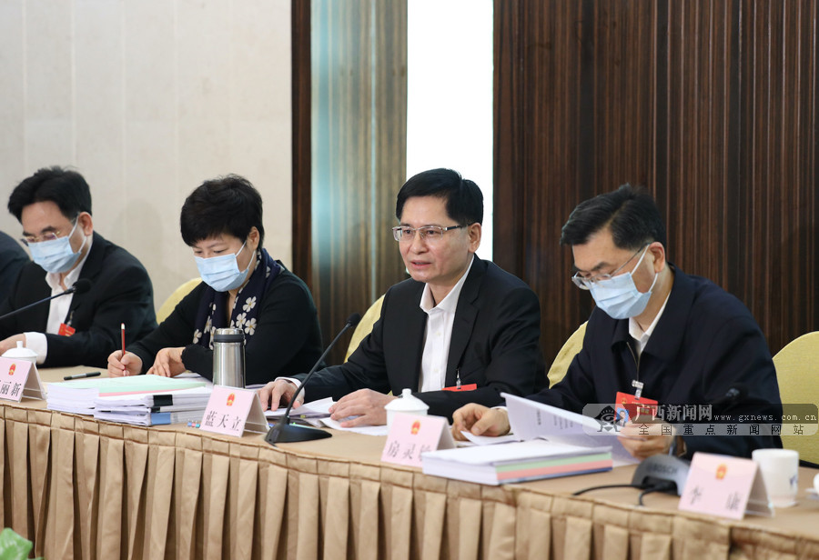 自治区党委副书记、自治区主席、广西代表团副团长蓝天立参加所在组审议。特派记者 黄克/摄