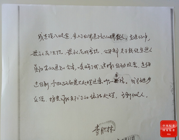 李胜林写下的《我为什么选择投案自首》,图为内容节选。
