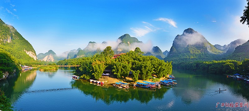 罗城仫佬族自治县境内的武阳江发源于九万大山原始森林带,水流平缓,江水清澈碧透,沿河翠竹青青,山峦叠翠,奇峰异彩。武阳江流域群山突兀,云雾缭绕,水墨画意,尽写卷中,江上泛舟,波光粼粼,村庄漫步,饮烟袅袅,牧童横笛,一派田园牧歌景象。于2011年被评为国家AA级旅游景区。(罗城县纪委监委供图)