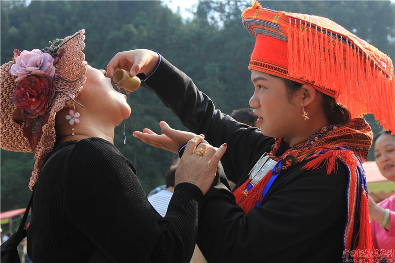 贵港市桂平紫荆瑶族乡瑶族村民以丰富多彩的乡村旅游,吸引各方游客,带动当地特色农副产品走向市场,使瑶族村民走上脱贫致富的道路。