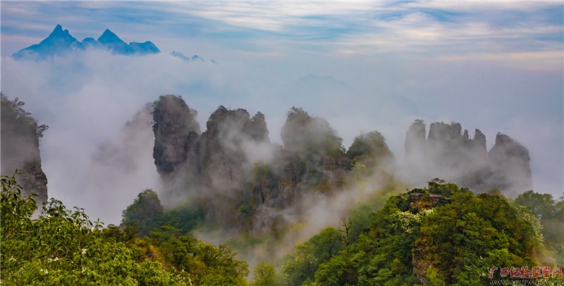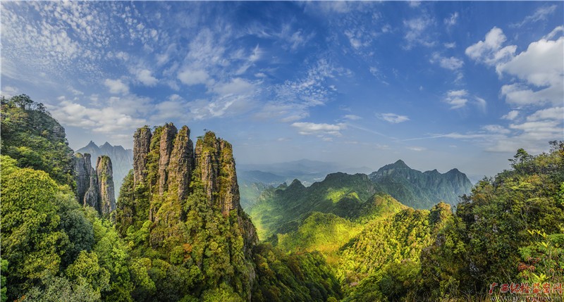 贵港市平南北帝山,地处广西大瑶山国家级自然保护区南麓,距离平南县城50公里,旅游区规划面积2240公顷,森林覆盖达85%,年平均温度18.9℃,年平均降水量1860mm。境内山清水秀,景色怡人,以峰秀、林茂、石奇 、花艳、泉清、雾仙"六绝"闻名,奇、秀、雄并存,幽、静、艳齐聚,素有"小张家界"之称。