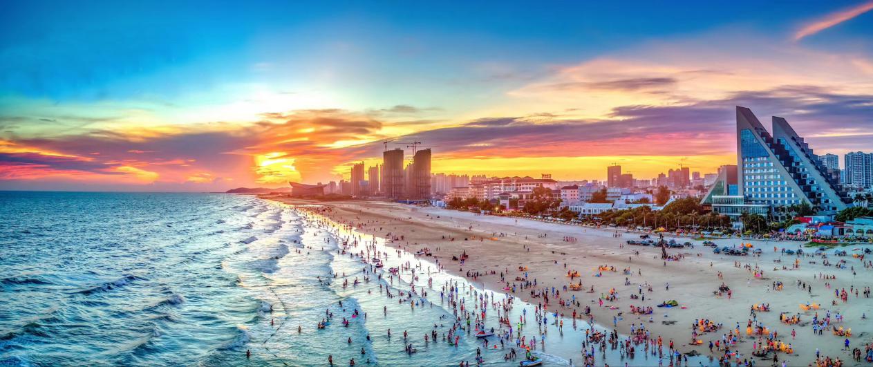 北海银滩东西绵延约24公里,具有滩长平、沙细白、水温净、浪柔软、无鲨鱼”的特点,被誉为天下第一滩”。图为,北海银滩。(谭瑞军 摄)