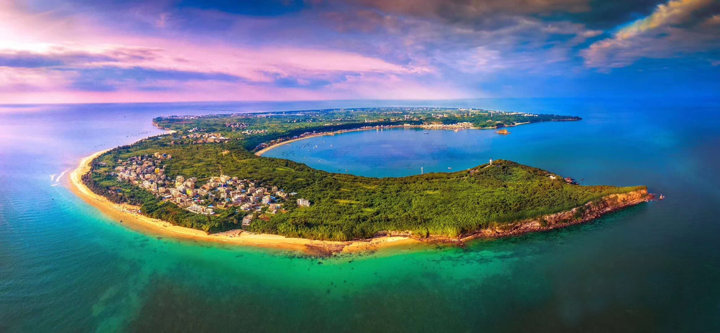 涠洲岛是中国最年轻的火山岛,如一颗巨大的翡翠,镶嵌在南海的万顷碧波之上,汇集了得天独厚的自然资源和浓郁鲜明的人文资源,素有大蓬莱仙岛”之称。涠洲岛2005年被《中国国家地理》评为中国最美的十大海岛第二名,2016年入选国家海洋局评选的中国十大美丽海岛”,受到了广泛关注。目前涠洲岛正朝着国内一流、国际知名”的休闲旅游度假海岛加快建设。图为,涠洲岛鸟瞰图。(谭瑞军 摄)