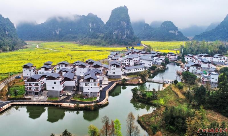 田阳区巴某村绿水青山、蓝天白云,一栋栋小楼环湖而立,描绘了一幅田园诗画、山水村庄”的美丽画卷。(田阳区纪委监委供图)