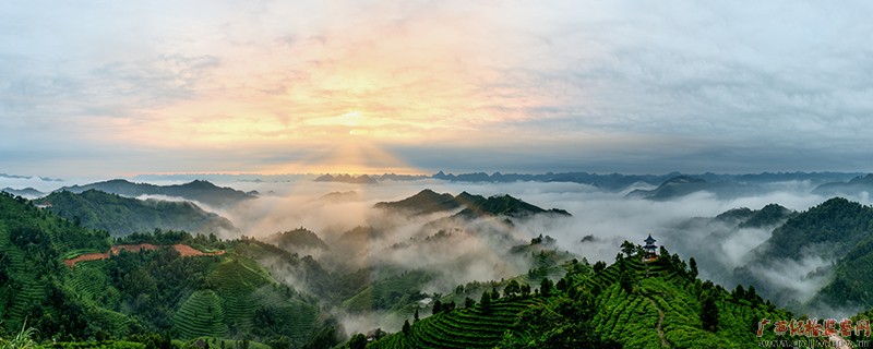 凌云县茶山金字塔由数十个茶峰组成,终年云雾缭绕,空气清新,气候宜人。(凌云县纪委监委供图 施广明/摄)