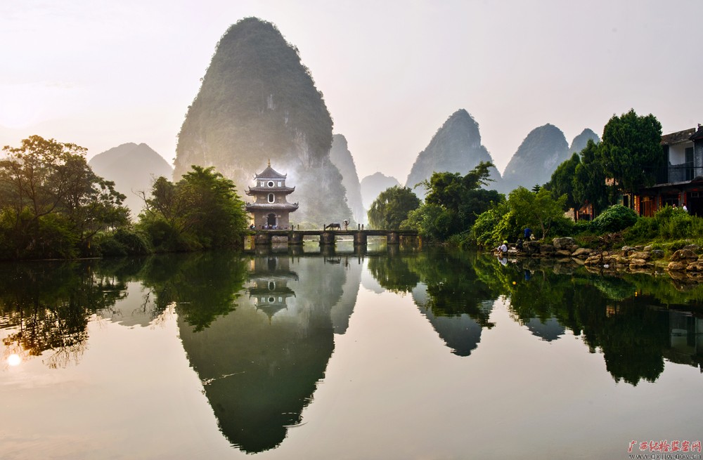 靖西旧州古镇依河而建,清澈见底的水流,半绕着古镇,河两岸鸟语花香,杨柳依依。(靖西市纪委监委供图)