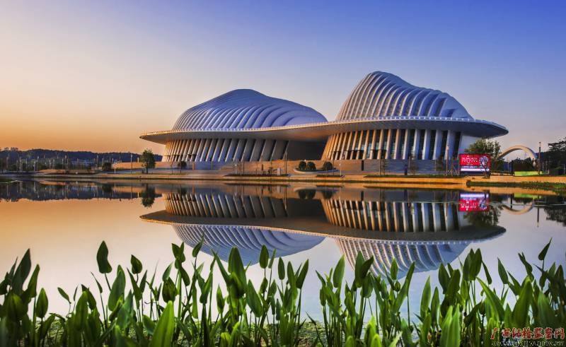 广西文化艺术中心是南宁人的艺术殿堂,设计师将它幻化成秀美的喀斯特山峦,依偎在邕江江畔;中外艺术家则汇聚于此,负责点亮每一个艺术之夜,唤醒你文艺的细胞。婷婷倒影,悠悠乐声,广西文化艺术中心已成南宁市重要的文化地标之一。(南宁市宾阳县纪委监委供图 曾祥忠摄)