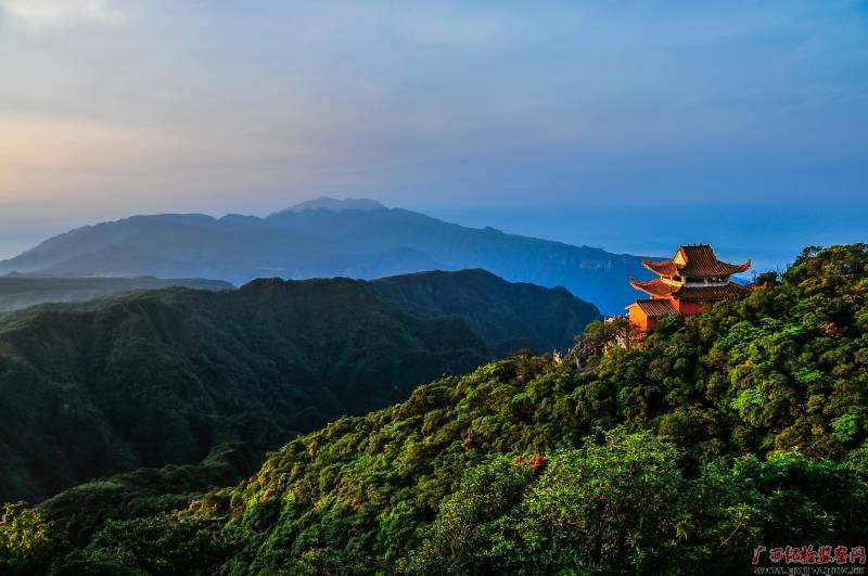 南宁大明山,地处南宁北部武鸣区内。山中不仅有原始森林、多种珍稀生物,还有此地特有的物种及古老地层,是个巨大的自然生物宝库。清晨的朝阳跃出云层,落在大明山金顶的黄色琉璃瓦上,映出一片金黄,照亮了山涧色彩,唤醒了草木精灵。(钟应善供图)