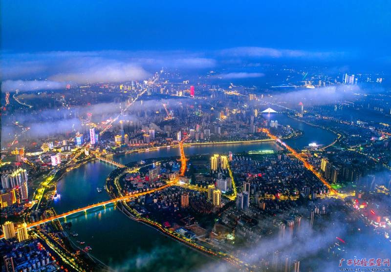 华灯初上的夜南宁,揭开的是与白天截然不同的面容——精致而璀璨。眼前这如九天之上流淌而来的星河,其实是那炽热夜经济扮靓凡间的最暖烟火。(南宁市纪委监委驻市工业和信息化局纪检监察组供图)