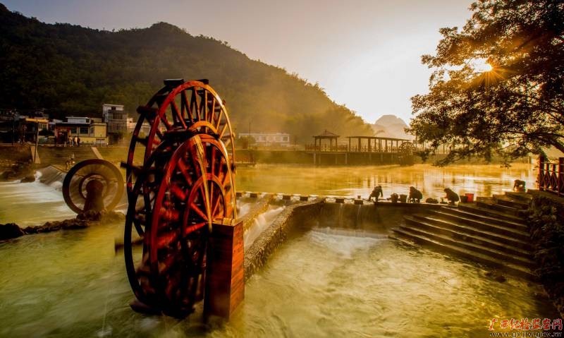 山水映农家,诗画小都百。在马山县小都百屯的乔老河畔,水边姑娘嬉笑打闹的谈论着生活趣事,却不知她们的笑声早被那红色水车悄悄的揉进了溪水的光影中,颇有几分江南水乡的悠然模样。(韦惠宝供图)