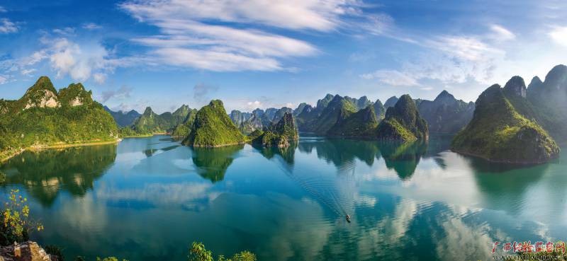 位于上林县西燕镇大龙洞村的大龙湖,属全国十大喀斯特溶岩水库,集桂林漓江之奇秀、越南下龙湾之壮美于一身。潋滟的湖光,明净的天空,再添上几笔浓淡不一的石山灌木,一幅韵味悠远的天然水墨画就在眼前铺陈开来。(黄云清供图)