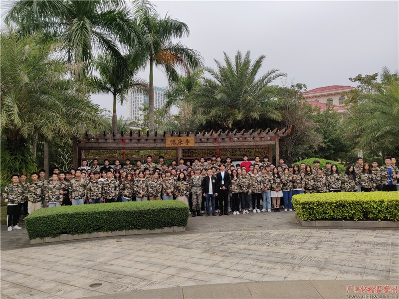 桂林理工大学南宁分校大一新生在廉政文化长廊上国防教育实践课
