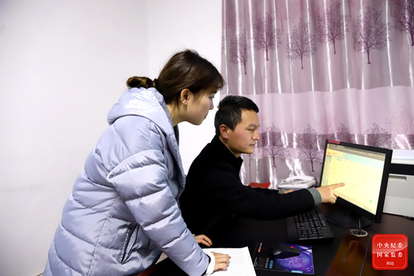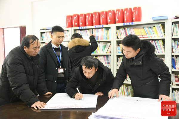 四川省古蔺县纪委监委拧紧换届选举“纪律阀”,紧盯换届选举各环节,严肃村换届选举工作纪律,持续开展监督。图为德耀镇纪检监察干部在燕岩村监督选举公告填写情况。(四川省古蔺县纪委监委 苏海鹏 摄)