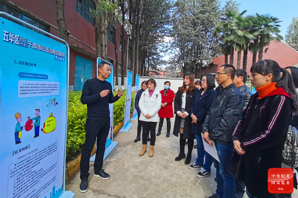 云南省昆明市五华区以村(社区)“两委”换届选举为契机,将近年来查处的村组干部违纪违法典型案例制作成移动展板进行巡展,将警示教育贯穿换届工作始终。图为该区在普吉街道普吉社区居委会开展典型案例巡展,严明换届纪律。(云南省昆明市五华区纪委监委 王永权 摄)