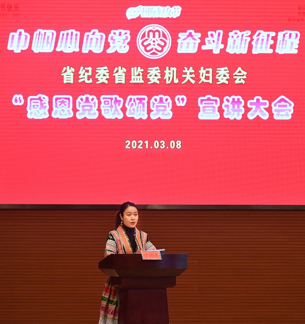 “新时代纪检监察女干部一定要牢记嘱托、接续奋斗,把新时代贵州精神作为‘传家宝’代代相传,把好传统带进新征程,将好作风弘扬在新时代,奋力在新征程上,以苦干实干加油干的贵州担当,不断开创新局面。”省纪委常委、省监委委员饶瑜珠在宣讲大会上勉励大家。