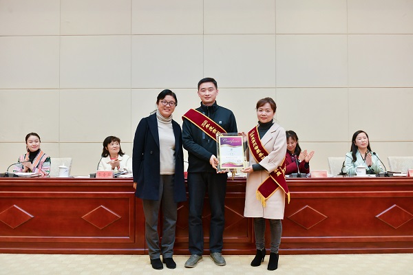 图为省纪委常委、省监委委员饶瑜珠为2020年度贵州省“最美脱贫攻坚家庭”奖获得者颁奖 (闻双 摄)