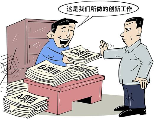 出现为创新而“创新”的怪象,原因出自多方面。要么是干部政绩观错位,想问题、办事情不是从服务群众的角度出发,而是汲汲于个人利益,热衷于做短时期内容易出彩的事。要么是作风飘浮,不愿沉入一线调查研究,只是在文件里、会议中、展板上“翻新”“包装”。要么是受考核诱导,一些上级部门对创新工作的考核不断变换花样,一年一个新主题,检查考评时大多不到现场察实情、看实绩,而是过分依赖基层报材料,基层单位疲于应付,只好在形式“创新”上做文章。