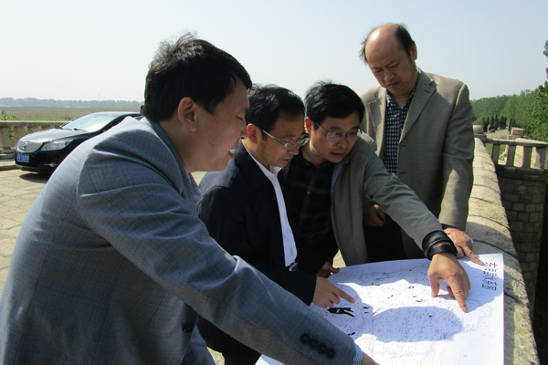 图为赵广东(左二)正在对东海县西双湖供水安全有关情况进行监督检查。