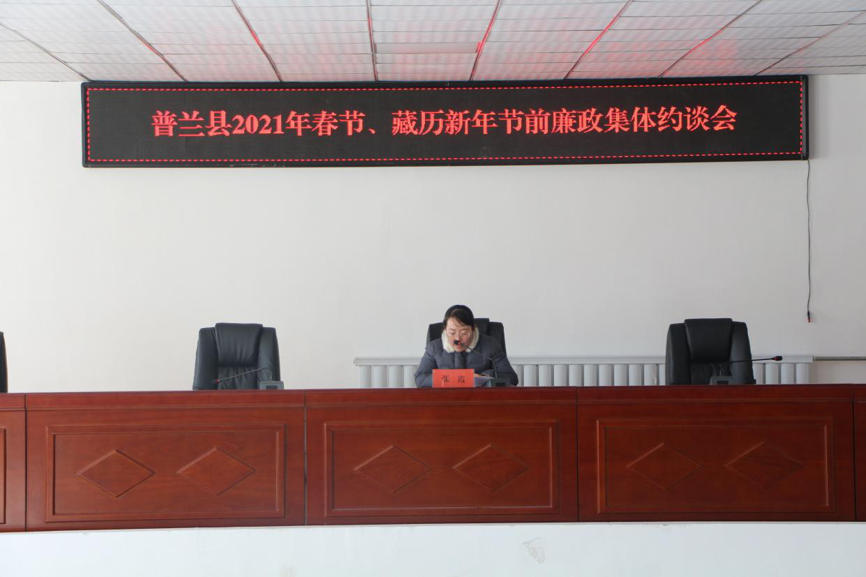 近日,普兰县纪委监委组织全县各单位负责公车管理、食堂、公务接待的分管领导及财务人员召开春节、藏历新年节前廉政集体约谈会。
