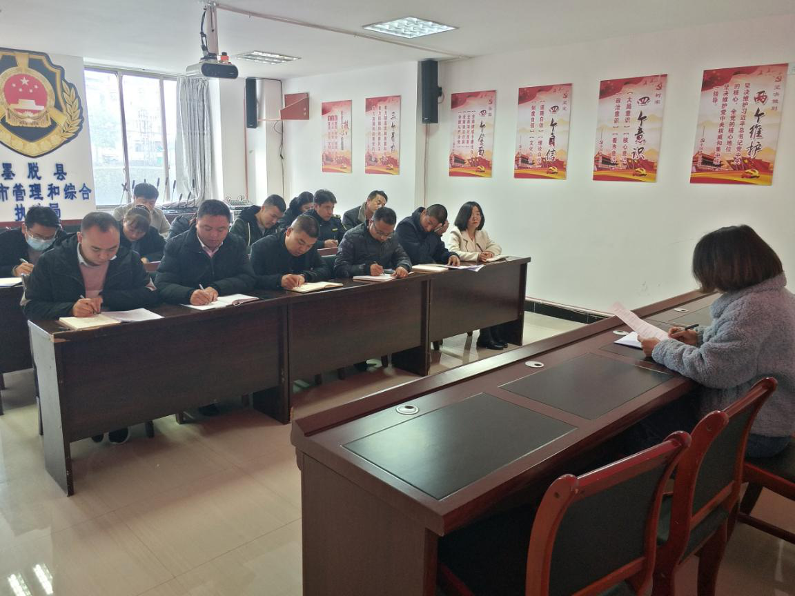 图为县纪委监委干部在应急管理局、城市综合管理执法局宣讲。