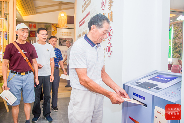 存储好家风,江苏省张家港市纪委监委创新推出“清廉家风银行”,运用存储、传承、增值等家风银行业务,引导党员干部群众争做“好家规”的制定者、“好家训”的传承者、“好家风”的践行者,积极营造崇廉尚廉的社会氛围。图为该市大新镇退休教师在家风柜员机上存储家风家训。(江苏省张家港市纪委监委供 冯云君 摄)