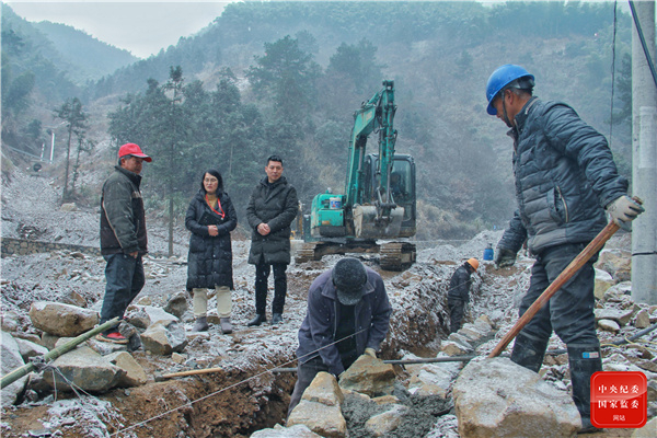 浙江省浦江县纪检监察机关积极开展清廉村居建设,紧盯村级工程建设、惠民政策落实等小微权力运行,深入一线访民情、听民声,推动基层监督向纵深发展。图为该县前吴乡纪检监察干部在袅溪村村级工程建设现场检查。(浙江省浦江县纪委监委 王小燕 摄)