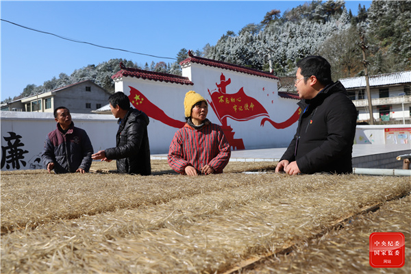 新年的第一场冬雪还未消融,江西省宜黄县纪检监察干部就开始挨家走访,紧紧围绕“四不摘”政策落实情况开展监督检查,持续巩固脱贫成效。图为该县圳口乡纪检监察干部与村务监督员一起,到横源村向群众了解帮扶政策落实等情况。(江西省宜黄县纪委监委 黄佳欣 摄)