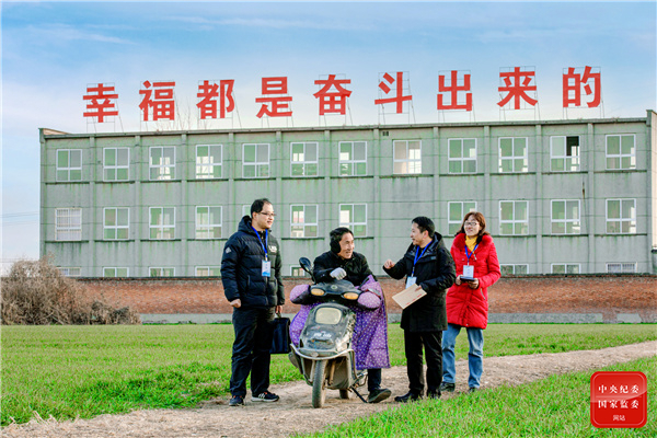 河南省漯河市郾城区纪委监委立足职能职责开展监督,严肃查处和整治群众身边的腐败问题,确保党中央政策措施落实落地。图为该区纪检监察干部在孟庙镇走访群众,了解涉农资金、惠民政策落实情况。(河南省漯河市郾城区纪委监委 王晓 摄)