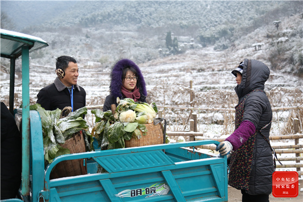 受寒潮影响,杭州市淳安县山区乡村气温骤降、并有冰冻积雪,淳安县纪检监察干部下村实地查看防冻抗寒工作落实和困难群众帮扶政策落实情况。图为该县大墅镇纪检监察干部在西园村走访农户了解相关情况。(杭州市淳安县纪委监委 王鸿钢 摄)