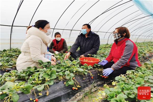 江苏省高邮市纪委监委立足职能职责,聚焦各项惠农政策落实、产业扶贫项目实施、产业补助款发放等民生领域,开展新一轮大走访。图为该市纪检监察干部在城南新区扶贫产业园了解惠农政策落实情况。(江苏省高邮市纪委监委 谭倩 摄)