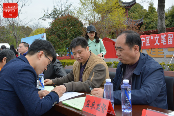 江苏省常州市天宁区纪委监委开展党风廉政走基层活动,通过现场接受群众咨询、组织问卷调查、发放监督联系卡等方式,广泛发动群众了解监督、主动参与监督。图为群众正在填写基层党风廉政建设情况问卷调查表。(江苏省常州市天宁区纪委监委 周宁 摄)