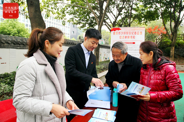 重庆市沙坪坝区联芳街道纪工委深入开展基层纪检信访接访活动,接受个案咨询,通过发放信访举报指南小册子,宣传检举控告工作规则,畅通群众监督渠道,让群众感受到纪检监察就在身边。(重庆市沙坪坝区纪委监委 何锐 摄)