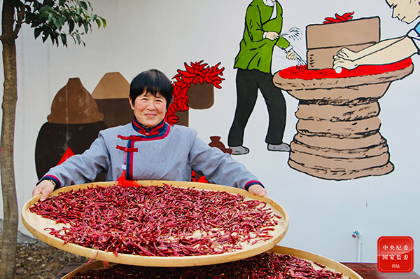 每当冬至来临,河南省舞钢市红山街道的农户们都会用自种的辣椒碾磨成粉、腌制成酱,等到年关时招待客人。火红的辣椒饱含着庄稼人一年来的辛勤付出,散发着秋收冬藏的喜悦。(河南省舞钢市纪委监委供 高源 摄)