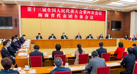 3月9日,海南代表团举行全体会议。 宋国强 摄