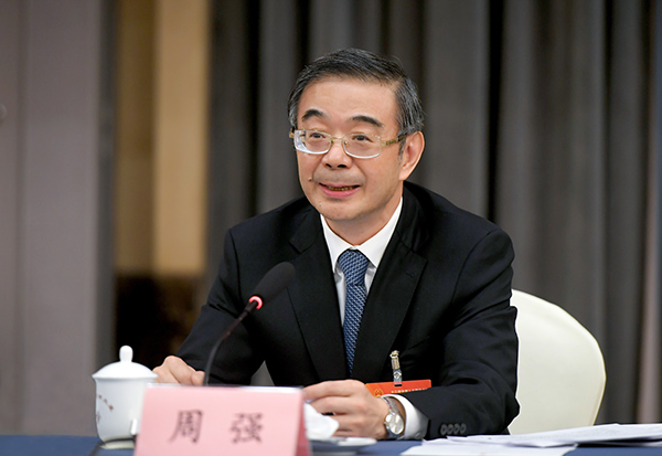 图为3月5日下午,最高人民法院院长周强参加十三届全国人大四次会议河南代表团审议。 杜小伟 摄