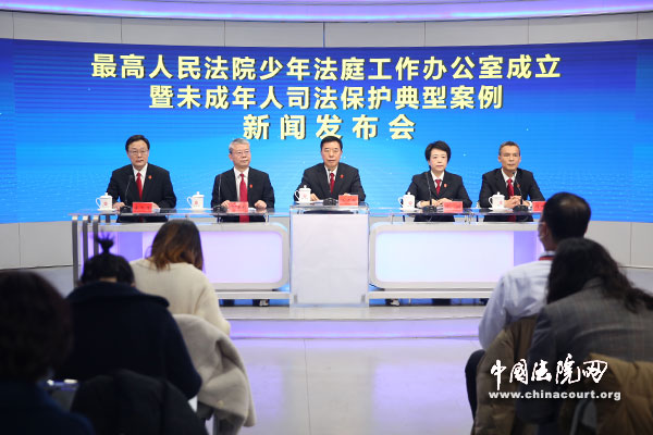 发布内容:发布最高人民法院少年法庭工作办公室成立的有关情况和未成年人司法保护典型案例,并回答记者提问。