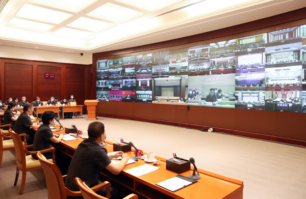 最高人民法院党组副书记、常务副院长贺荣主持会议。最高人民法院院领导陶凯元、裴显鼎、贺小荣出席会议。北京、辽宁、吉林、浙江、河南、广东、重庆、甘肃高院介绍工作经验。最高人民法院有关单位负责同志在最高人民法院主会场参加会议。最高人民法院各巡回法庭、各高级法院主要负责同志在各视频分会场参会。(记者 孙航)